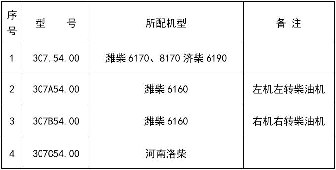 用戶在選型訂購時,須參照下表,標(biāo)明所需電動預(yù)供油泵的具體型號,單位為臺。